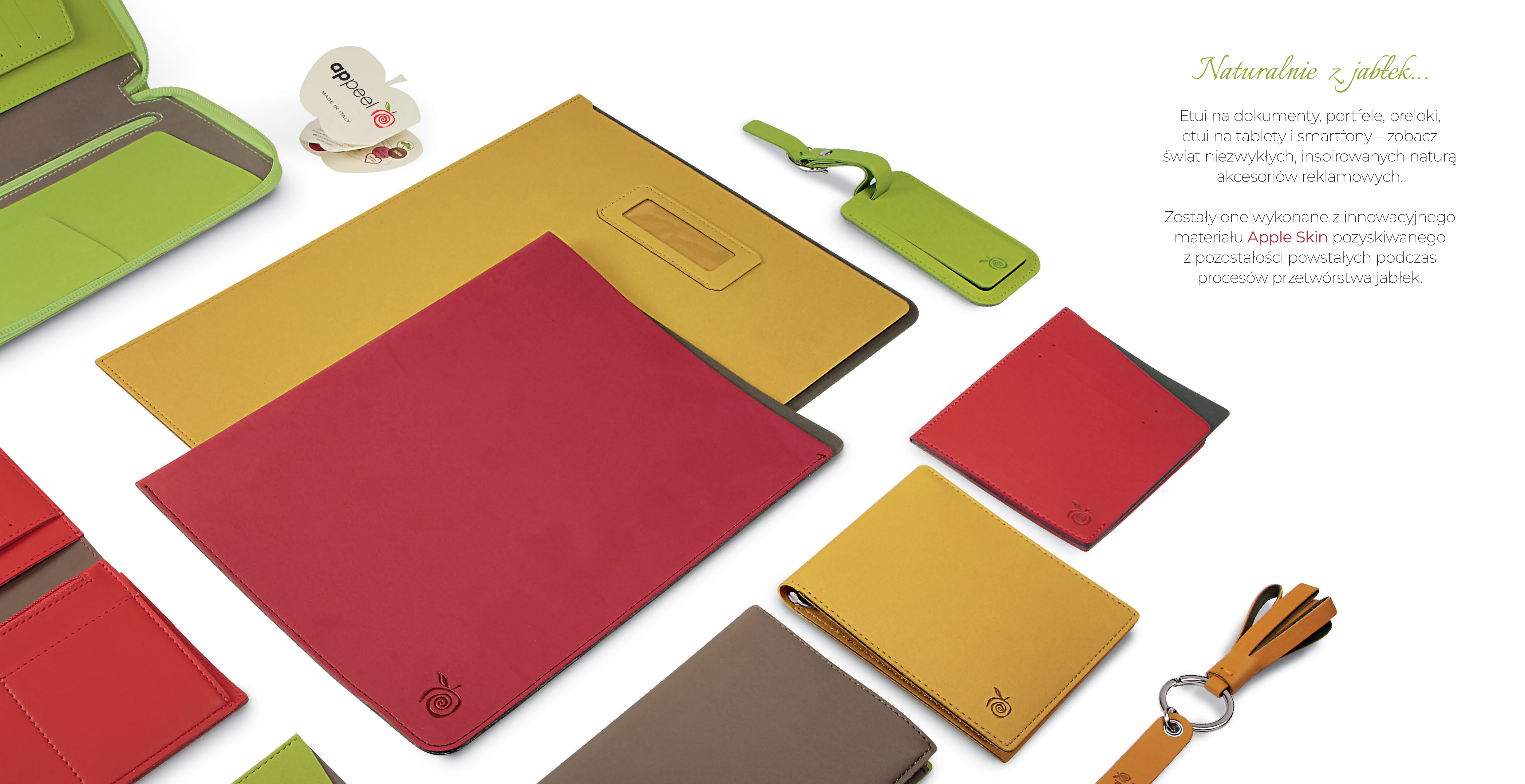 Kolekcja Appeel to linia kalendarzy, notesów i akcesoriów reklamowych wykonanych z ekologicznego papieru oraz skóry ekologicznej – Apple Skin™, pozyskanych z pozostałości powstałych podczas procesów przetwórstwa jabłek. Odpady te są poddawane recyklingowi i przekształcane w nowy surowiec.